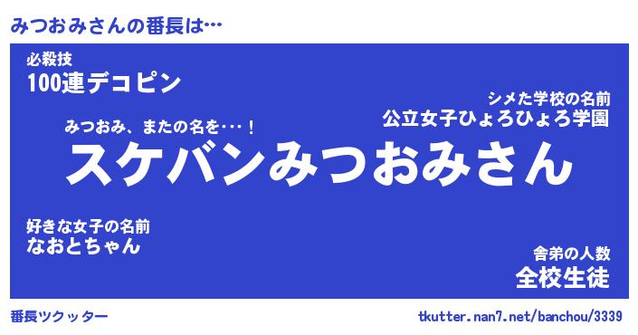 | 意味不明あだ名 | 『ペロリンみつおみ』『永久保存みつおみ』 |
