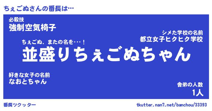 | 男性向けラノベタイトル風あだ名 | 『ちぇごぬの憂鬱』 |