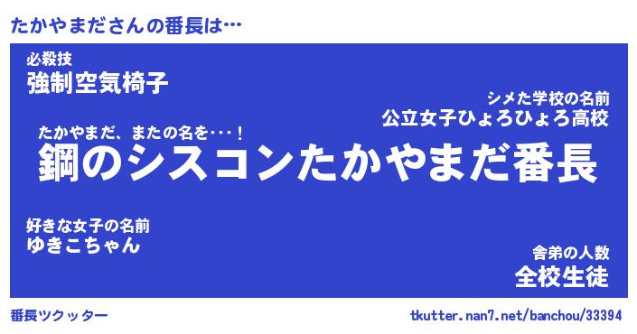 | ファンタジー風あだ名 | 『タカフェル』『エターナルタカヤマダー』 |