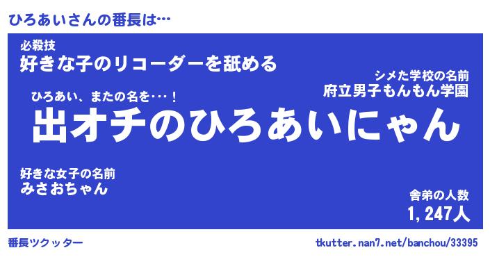 | 意味不明あだ名 | 『ペロリンひろあい』『永久保存ひろあい』 |