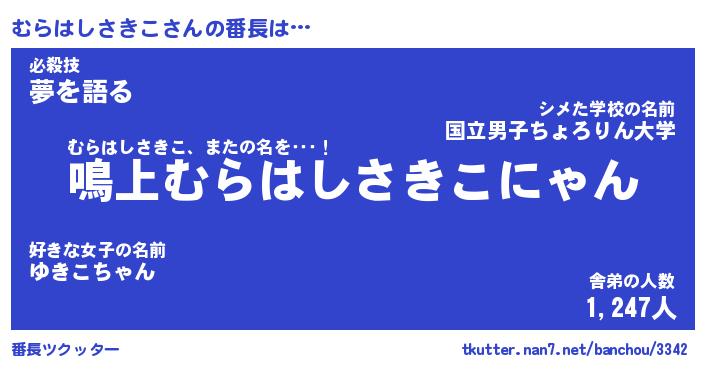| 伝説のあだ名 | 『封印されしスナイパーむらはしさきこ』 |