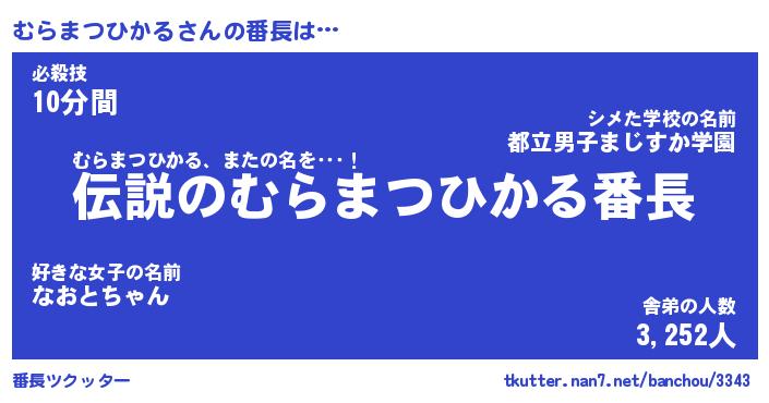 | 男性向けラノベタイトル風あだ名 | 『むらまつひかるの憂鬱』 |