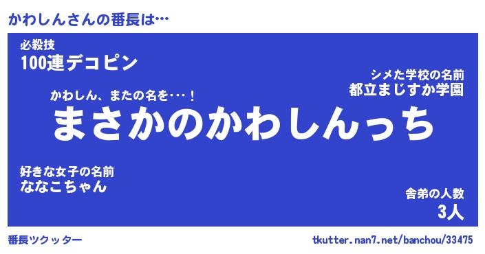 | 意味不明あだ名 | 『ペロリンかわしん』『永久保存かわしん』 |