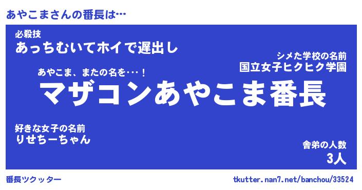 | 伝説のあだ名 | 『封印されしスナイパーあやこま』 |
