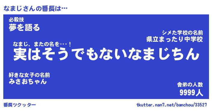 | ヒーロー風カッコイイあだ名 | 『スーパーナマジ』『ウルトラなまじマン』 |