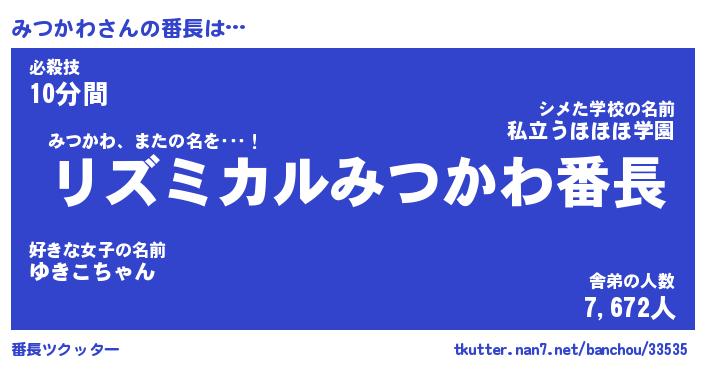 | 肩書あだ名 | 『みつかわ店長』『みつかわ総理大臣』 |