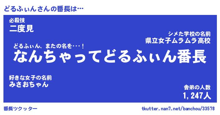 | 男性向けラノベタイトル風あだ名 | 『どるふぃんの憂鬱』 |