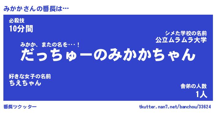 | ヒーロー風カッコイイあだ名 | 『スーパーミカカ』『ウルトラみかかマン』 |