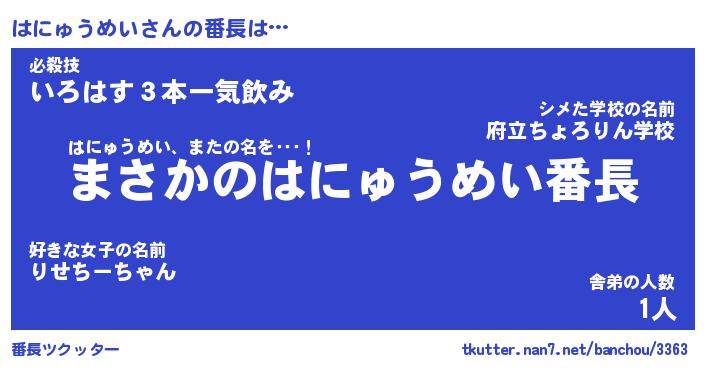 | 2回繰り返すあだ名 | 『はにはに』『ははにに』『いそいそ』 |