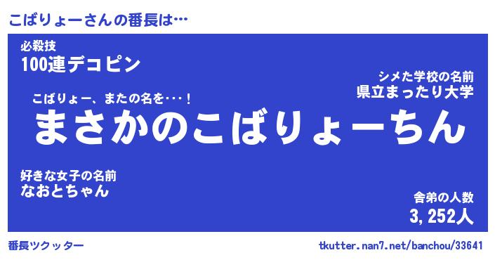| 伝説のあだ名 | 『伝説のスナイパーこばりょー』 |