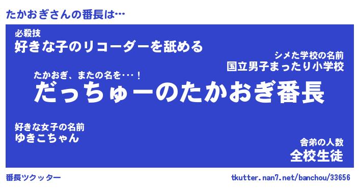 | ポケモン風あだ名 | 『タカチュウ』『タカオダネ』 |