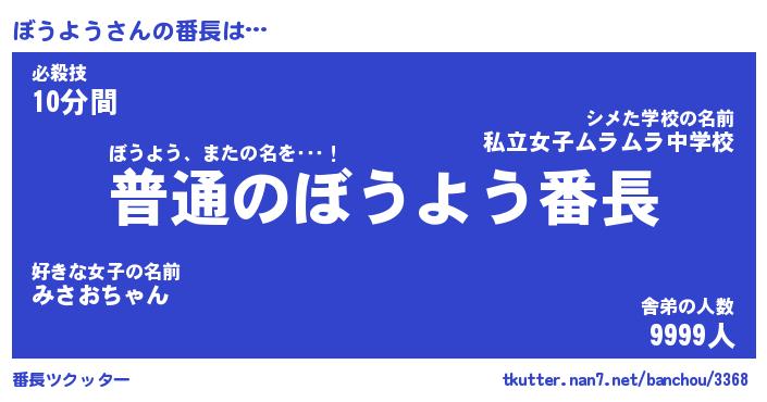 | ポケモン風あだ名 | 『ボウチュウ』『ボウヨダネ』 |