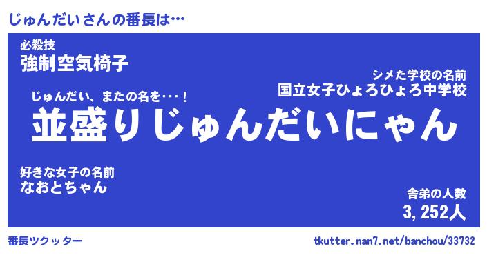 | 恥ずかしいあだ名 | 『プリティーじゅんだい』『じゅっちょ』 |