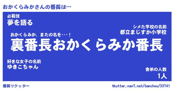 | 女子向けラノベタイトル風あだ名 | 『おかくらみか姫と円卓の騎士』 |