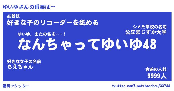 | ファンタジー風あだ名 | 『ユイフェル』『エターナルユイユー』 |
