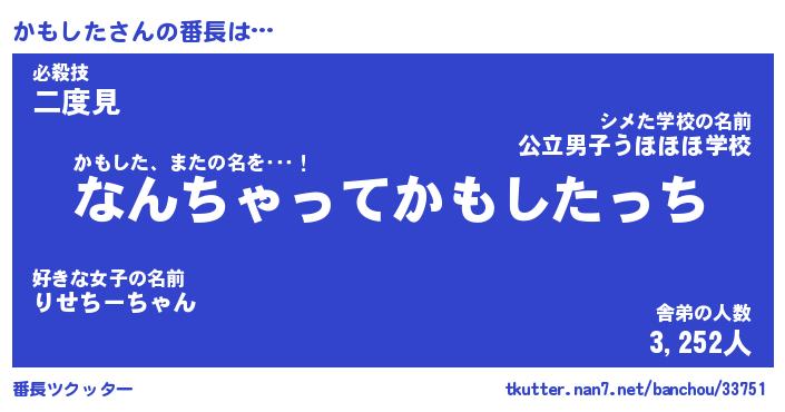 | 意味不明あだ名 | 『ペロリンかもした』『永久保存かもした』 |