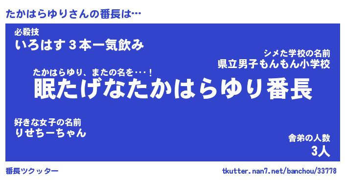 | ヒーロー風カッコイイあだ名 | 『スーパータカハラユリ』『魔戒騎士タカ』 |