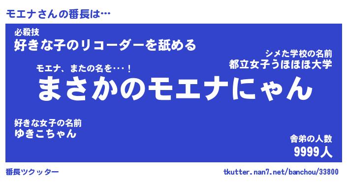 | 意味不明あだ名 | 『ペロリンモエナ』『モエナフォーエバー』 |