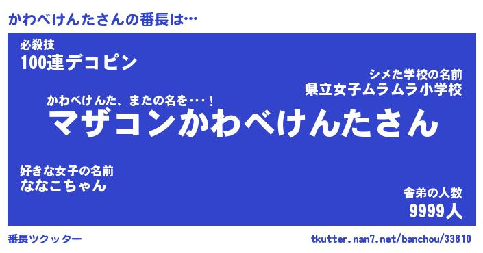 | ヒーロー風カッコイイあだ名 | 『スーパーカワベケンタ』『黄金騎士カワ』 |
