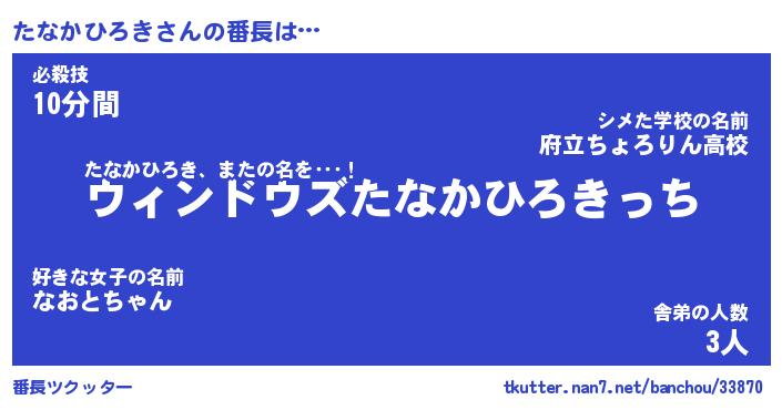 | ヒーロー風カッコイイあだ名 | 『スーパータナカヒロキ』『魔戒騎士タナ』 |