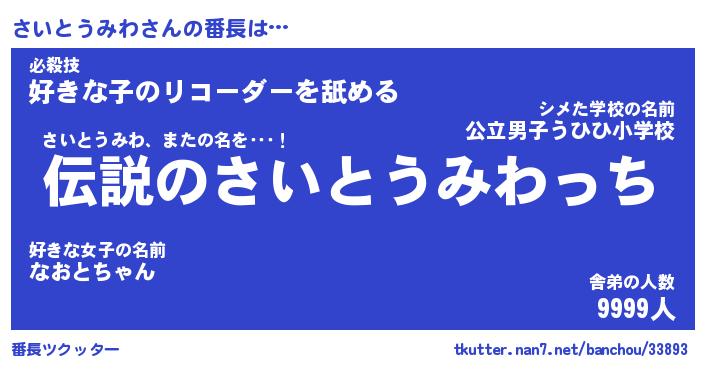 | ヒーロー風カッコイイあだ名 | 『スーパーサイトウミワ』『炎刃騎士サイ』 |