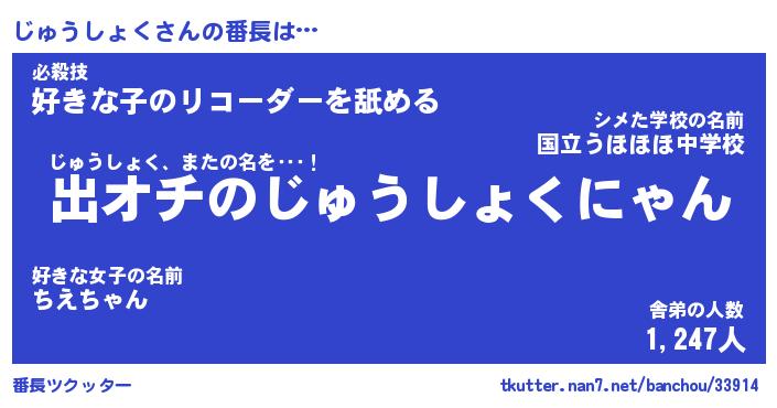 | ヘコむあだ名 | 『じゅにゅー』『なまこ酢』『じゅお』 |