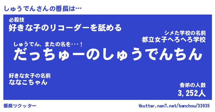 | 肩書あだ名 | 『しゅうでんCEO』『しゅうでん大統領』 |