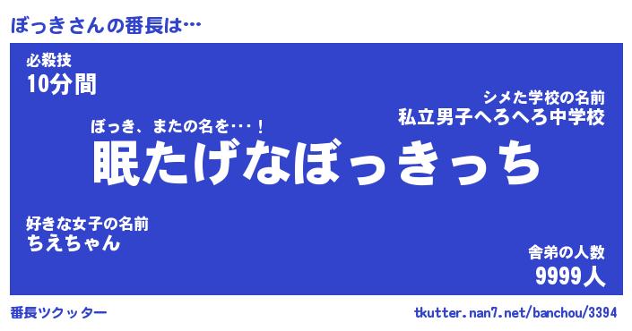 | 伝説のあだ名 | 『封印されしスナイパーぼっき』 |