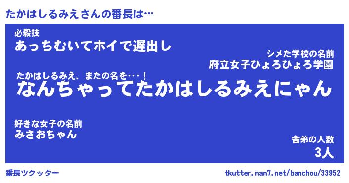 | 2回繰り返すあだ名 | 『たかたか』『たたかか』『おやおや』 |