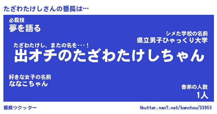 | 2回繰り返すあだ名 | 『たざたざ』『たたざざ』『なあなあ』 |