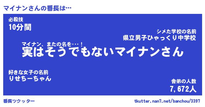 | 伝説のあだ名 | 『封印されしスナイパーマイナン』 |