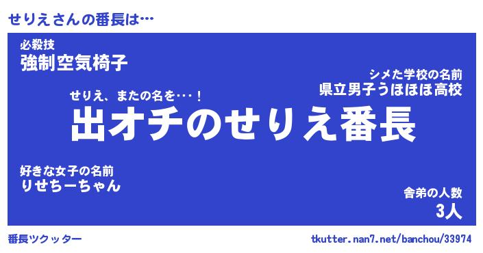 | ピコ太郎風あだ名 | 『セコ一郎』『ピセ一郎』『セリ五郎』 |