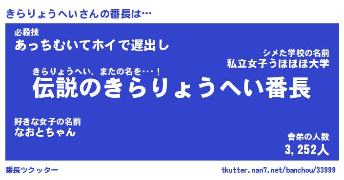 | 意味不明あだ名 | 『ペロリンきらりょうへい』 |