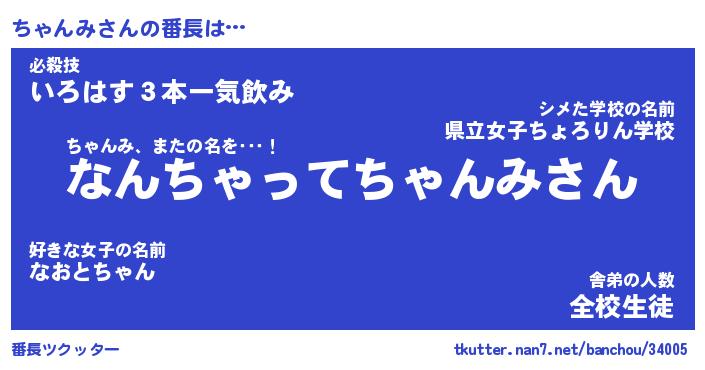| 意味不明あだ名 | 『ペロリンちゃんみ』『永久保存ちゃんみ』 |