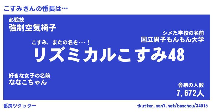 | 男性向けラノベタイトル風あだ名 | 『こすみの憂鬱』 |