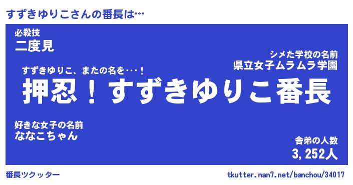 | ヒーロー風カッコイイあだ名 | 『スーパースズキユリコ』『炎刃騎士スズ』 |