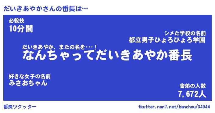 | 恥ずかしいあだ名 | 『プリティーだいきあやか』『だいっちょ』 |