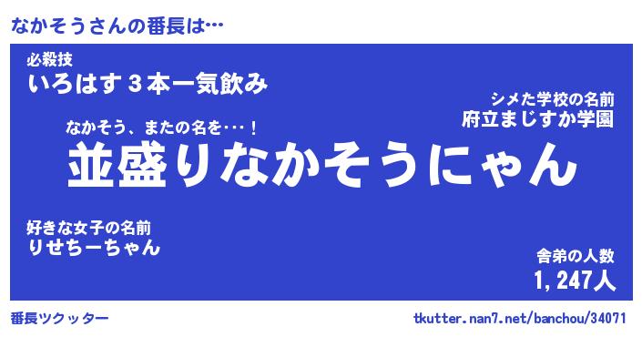 | 意味不明あだ名 | 『ペロリンなかそう』『永久保存なかそう』 |