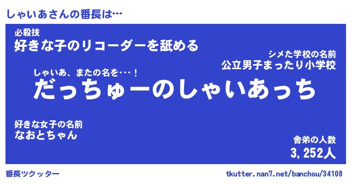 | 意味不明あだ名 | 『ペロリンしゃいあ』『永久保存しゃいあ』 |