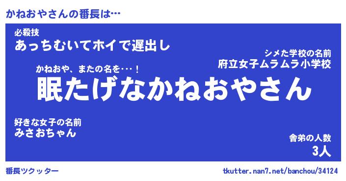 | 意味不明あだ名 | 『ペロリンかねおや』『永久保存かねおや』 |