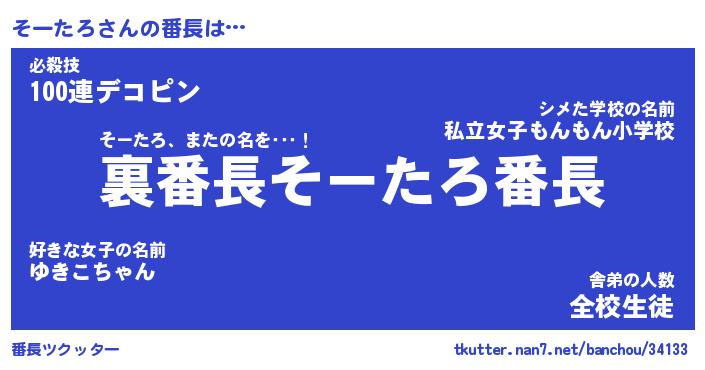 | 意味不明あだ名 | 『ペロリンそーたろ』『永久保存そーたろ』 |