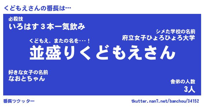 | ヘコむあだ名 | 『くどっふぃ~』『なまこ酢』 |