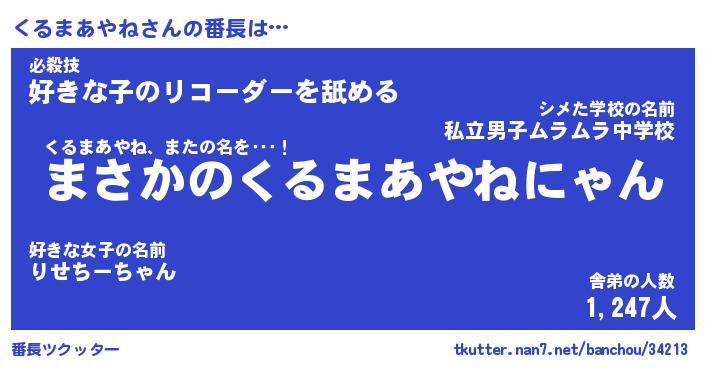 | ヘコむあだ名 | 『くるにー』『なまこ酢』『くるっ子』 |