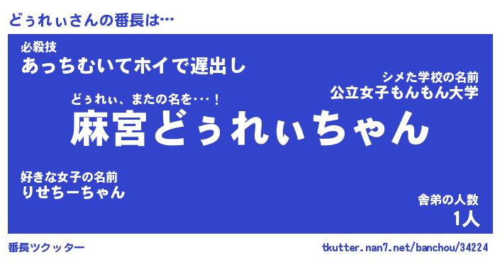 | 意味不明あだ名 | 『ペロリンどぅれぃ』『永久保存どぅれぃ』 |
