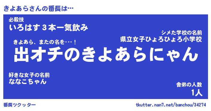 | ピコ太郎風あだ名 | 『キコ三郎』『ピキ次郎』『キヨ史郎』 |