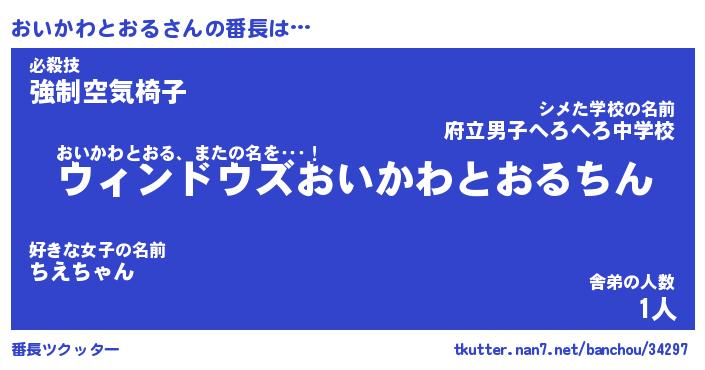 | 伝説のあだ名 | 『伝説のスナイパーおいかわとおる』 |