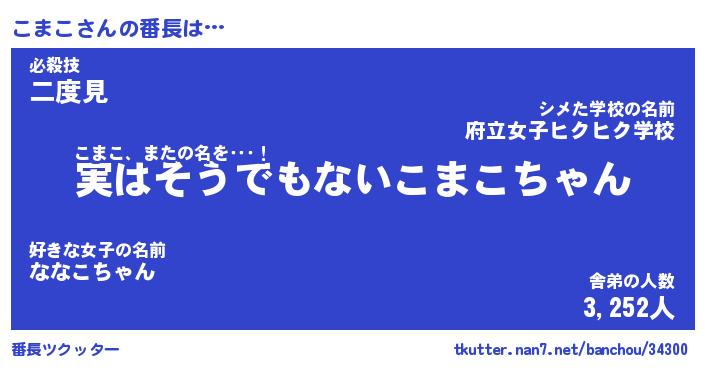 | 2回繰り返すあだ名 | 『こまこま』『ここまま』『ぬるぬる』 |
