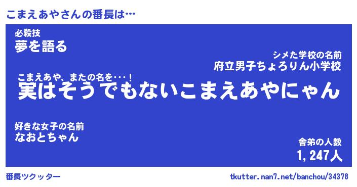| ファンタジー風あだ名 | 『コマフェル』『エターナルコマエアヤー』 |