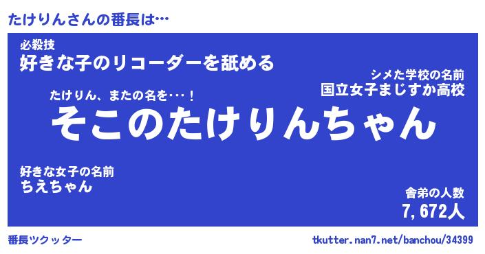 | ファンタジー風あだ名 | 『タケフェル』『エターナルタケリンー』 |