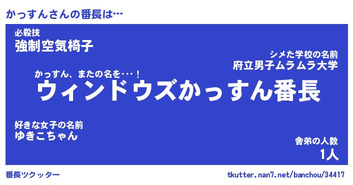| 意味不明あだ名 | 『ペロリンかっすん』『永久保存かっすん』 |